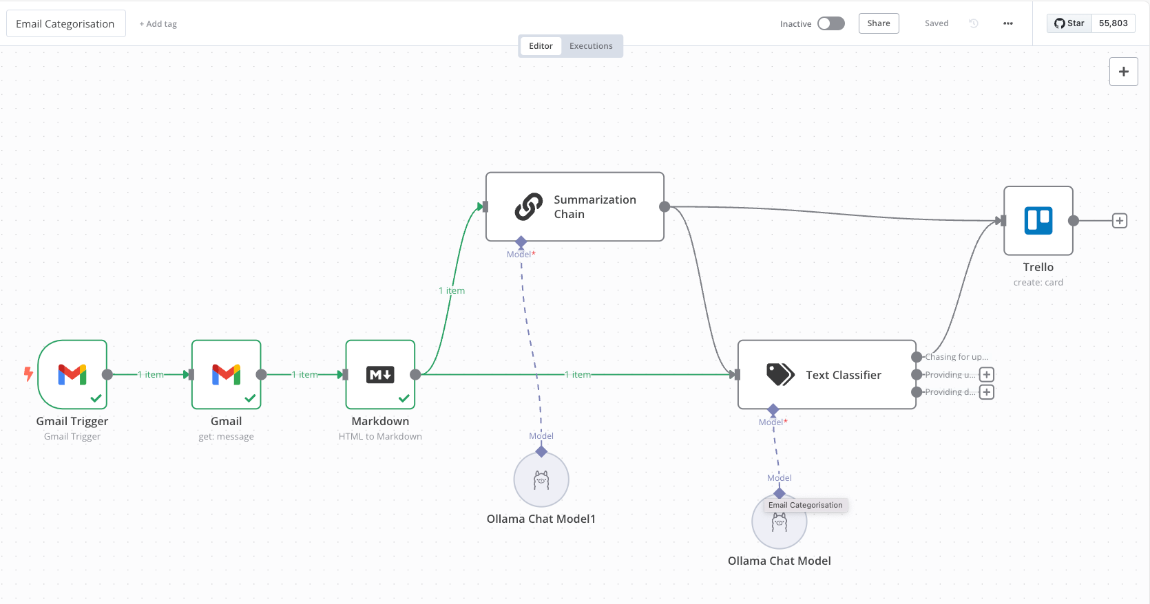 Here’s my contrived yet relatable example, imagine your inbox is flooded daily with client emails (hard to image I know...) some seeking updates, others providing documents, and many needing immediate attention. Triage becomes a time sink. With the n8n workflows, you could streamline this process using a locally deployed instance of Llama 3.2.